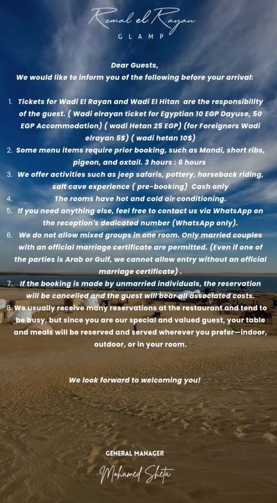 We offer a one-of-a-kind experience in the heart of the desert for those who have the adventure spirit, the love for nature and at the same time want to experience comfort and luxury.
